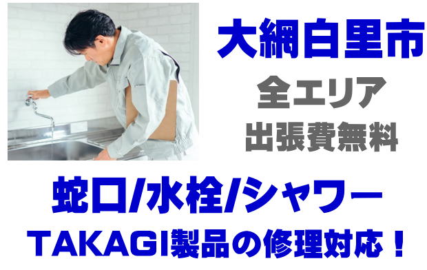 大網白里市で水栓メーカーTAKAGIの修理業者をお探しなら当社までお気軽にお問い合わせください。蛇口の水漏れ、シャワーの故障などタカギ製に関するトラブルなら何でもご相談ください。